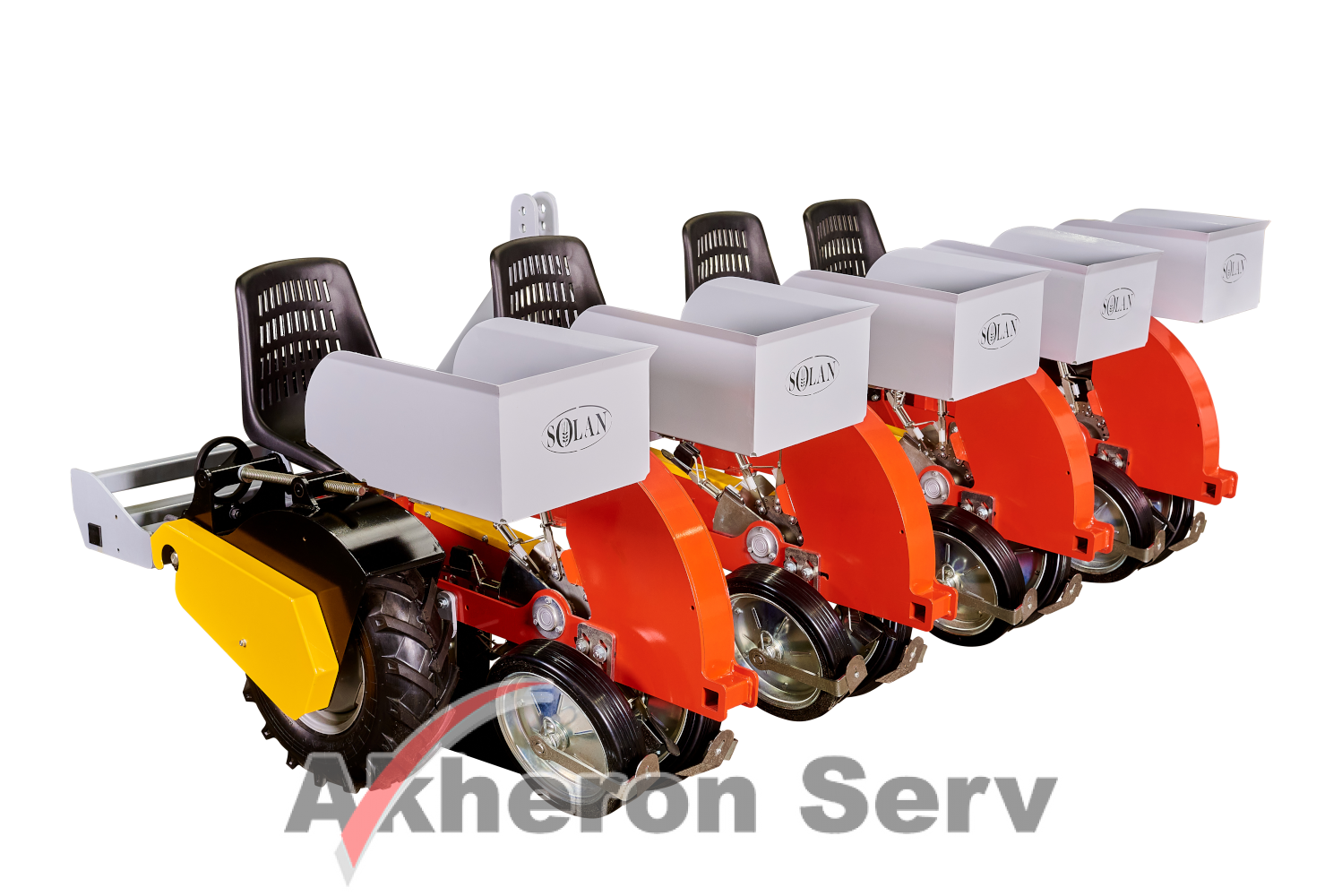 Mașină agricolă destinată plantării răsadurilor, elementul său distinctiv fiind mecanismul disc-cu-prindere, care asigură poziționarea precisă și eficientă a plantelor direct în sol.