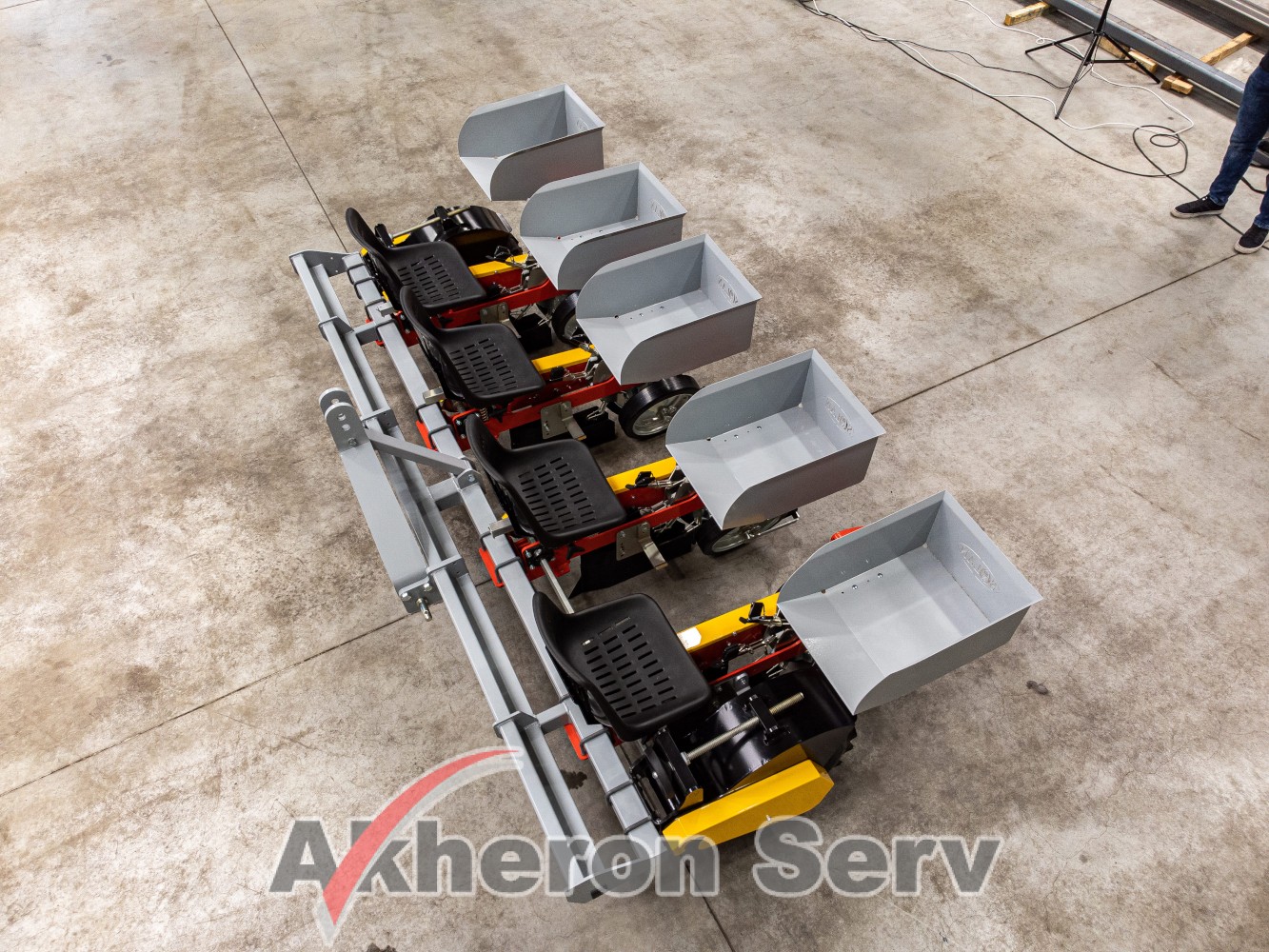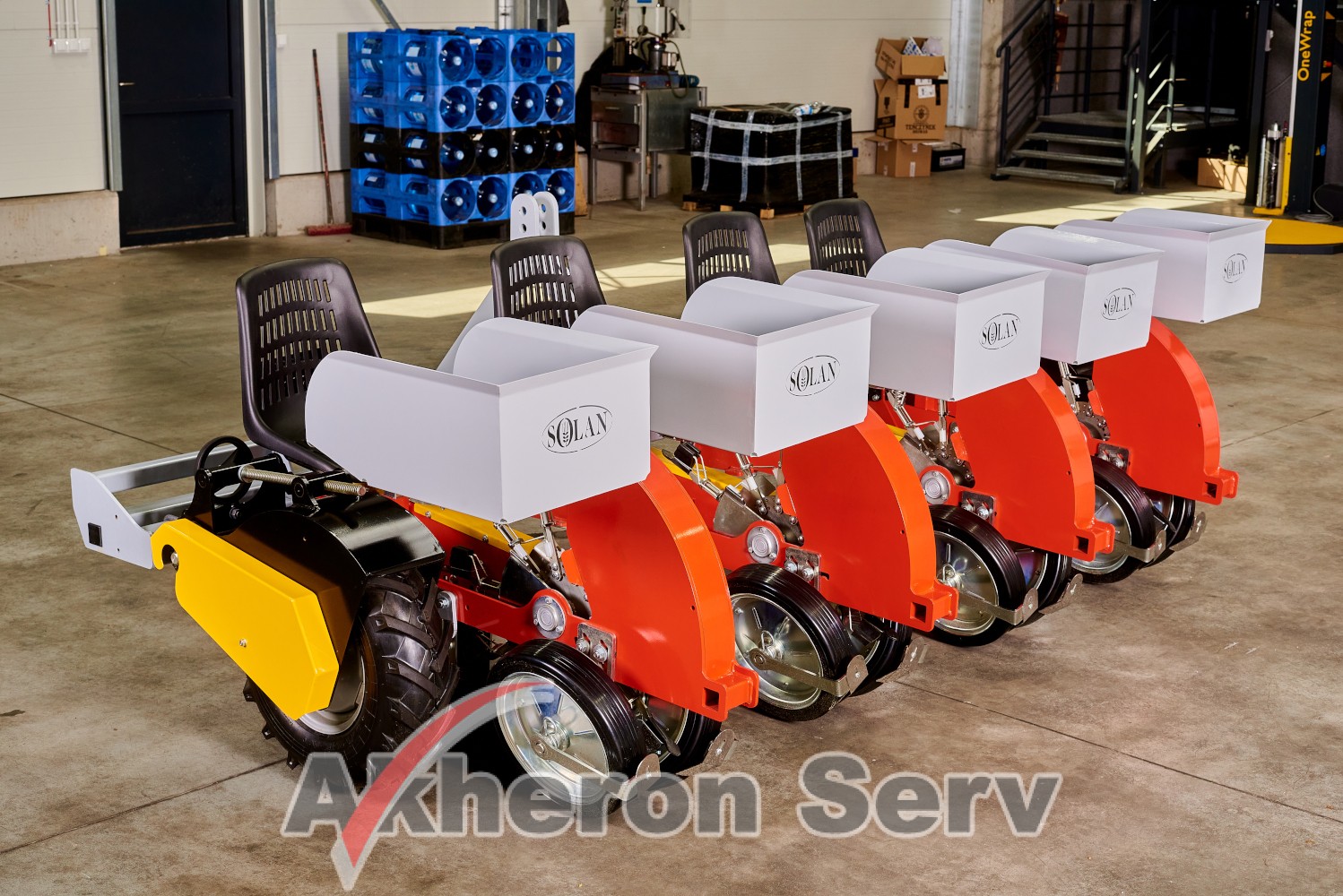 Mașină agricolă destinată plantării răsadurilor, elementul său distinctiv fiind mecanismul disc-cu-prindere, care asigură poziționarea precisă și eficientă a plantelor direct în sol.