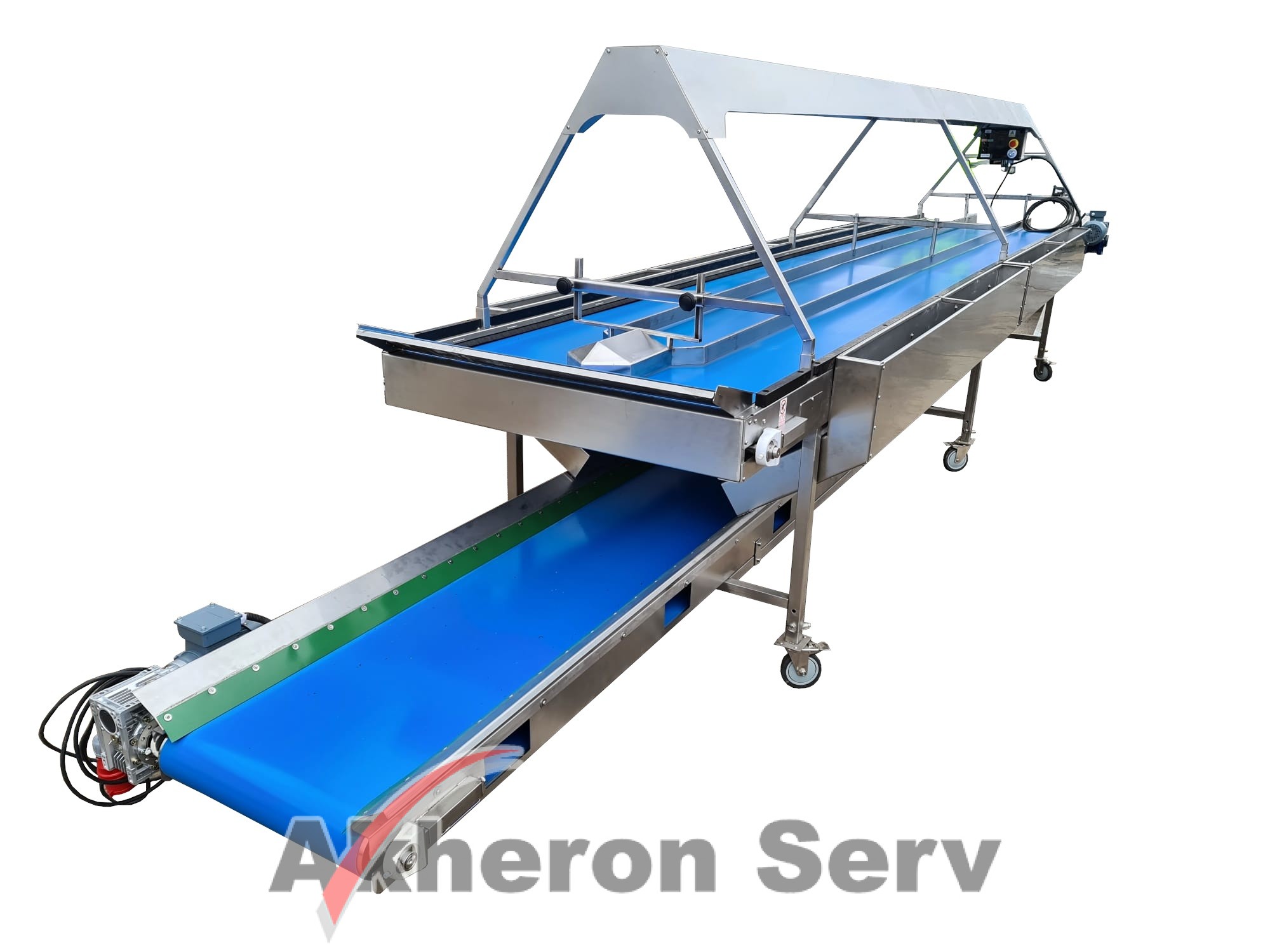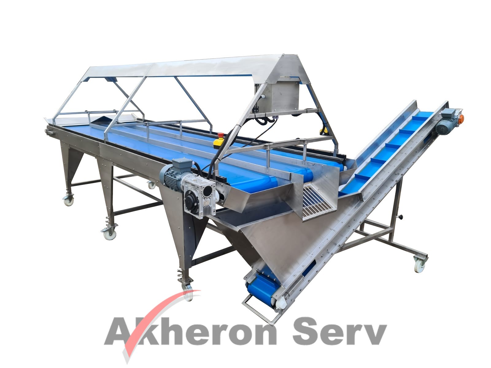 Selector de fructe și legume Agro-Weld model SST Mesele de selectare cu bandă facilitează sortarea manuală a legumelor pe linia de producție. Da...